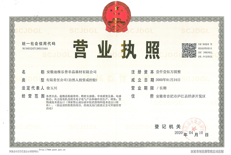 安徽迪維樂普非晶器材有限公司從2013年起至今每年捐贈(zèng)安徽省合肥市廬江縣長(zhǎng)崗中學(xué)和廬江縣水關(guān)中學(xué)助學(xué)金8萬(wàn)元。